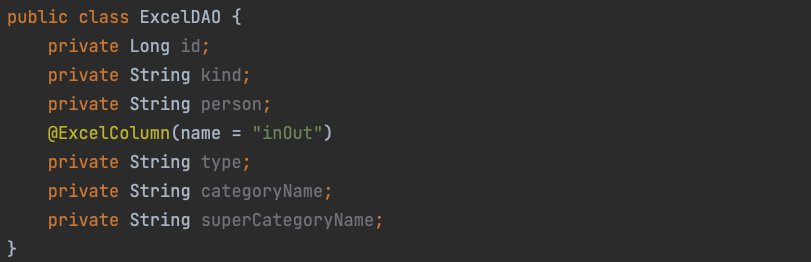 또 @ExcelColumn 에 있는 inOut 부분으로 매핑을 시켜주게 됩니다.
