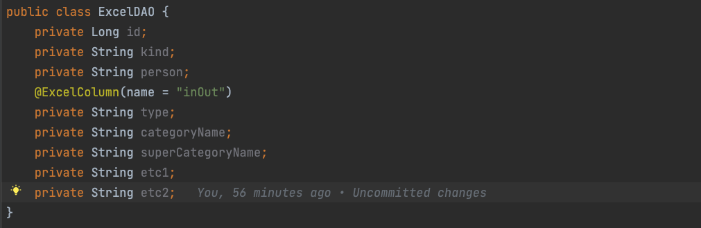 추가적으로 ExcelColumn 이라는 어노테이션을 만들어 유연하게 처리해보겠습니다.